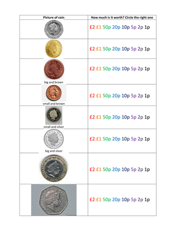 Money Value and Recognising Coins | Teaching Resources from dryuc24b85zbr.cloudfront.net Later the 5p and 10p coin can be introduced. Read the questions out to your students and get them to write or call out the answers. Sometimes going out, going to the bank has some papers written by english.