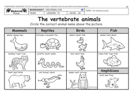 Awesome 10 Vertebrate Animals English Worksheet Pics